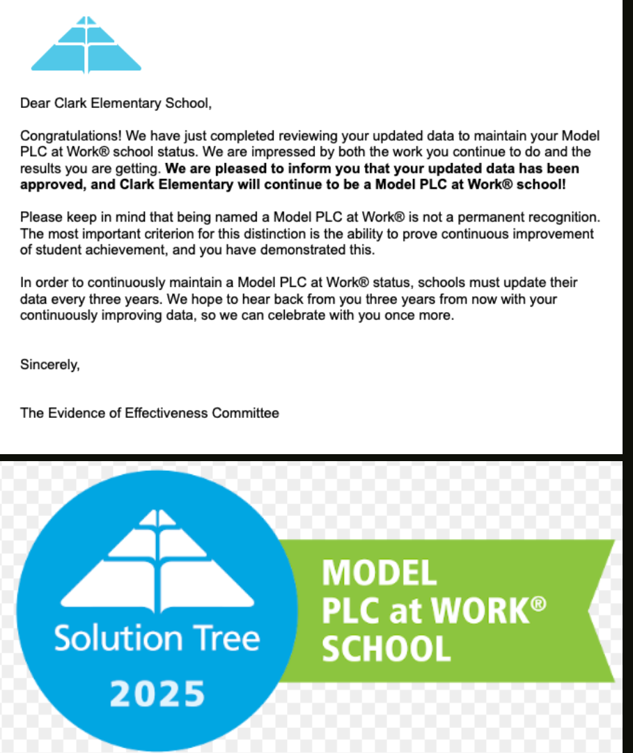Clark Recognized again as a Model PLC at Work School!!
